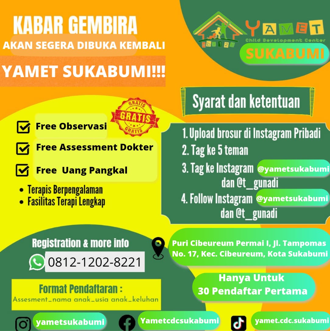 YAMET Child Development Center adalah sebuah center yang membantu anak-anak supaya mempunyai tumbuh kembang yang optimal.