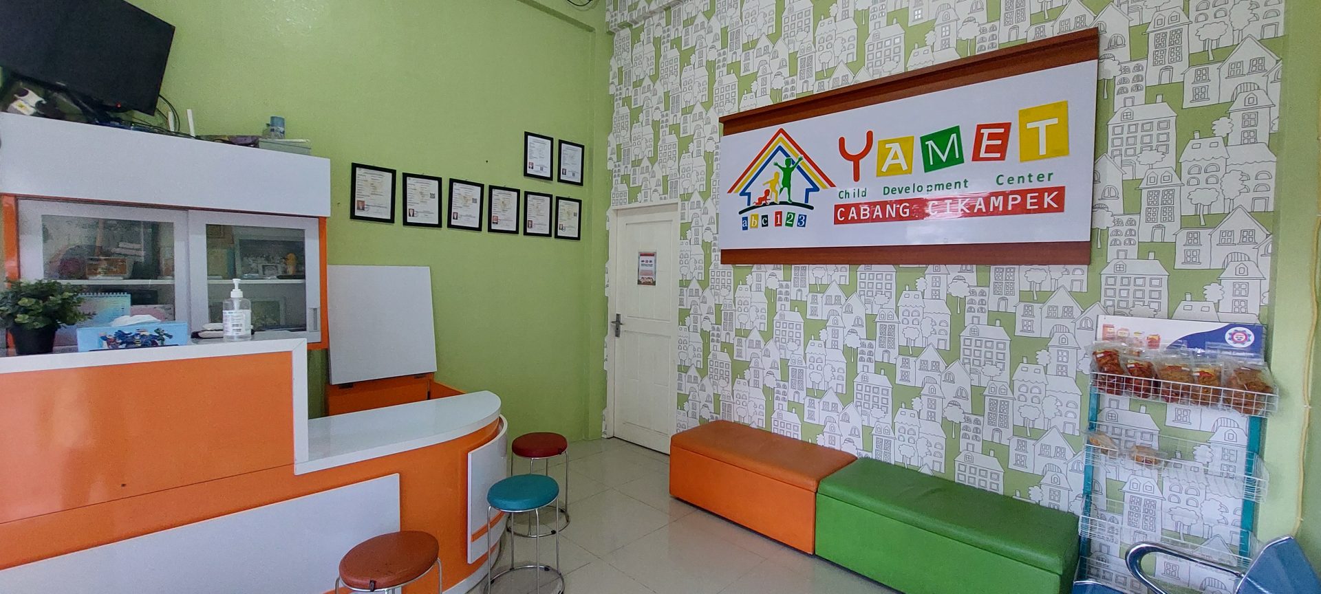 Yamet Child Development Centre Cabang Cikampek memiliki fasilitas ruang tunggu yang nyaman, ruang Sensori Integrasi, ruang Barin Gym, ruang Snoozelen, ruang Terapi Okupasi, ruang Terapi Wicara dan ruang Terapi Perilaku, yang dilengkapi dengan kamera cctv di setiap ruangan.